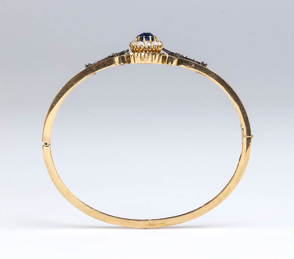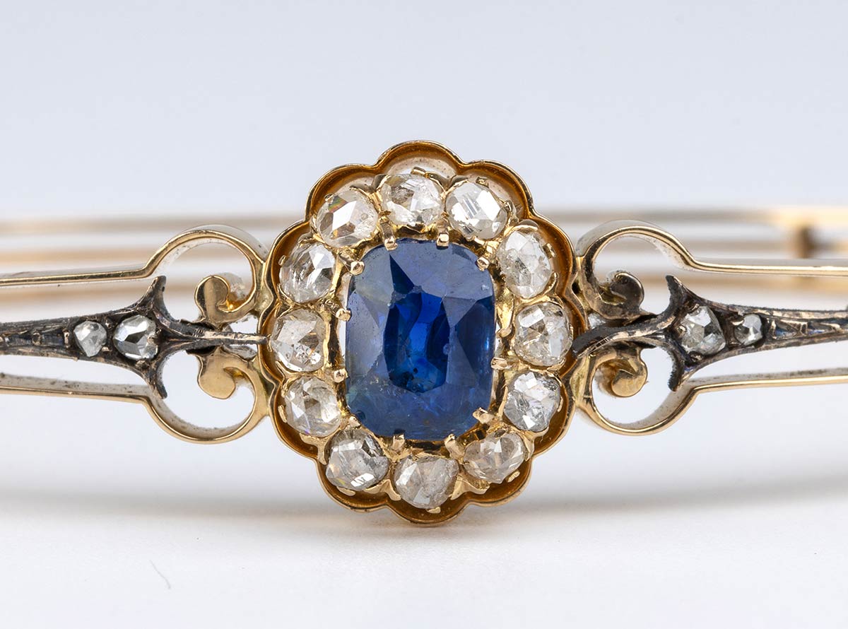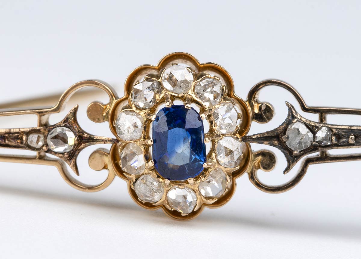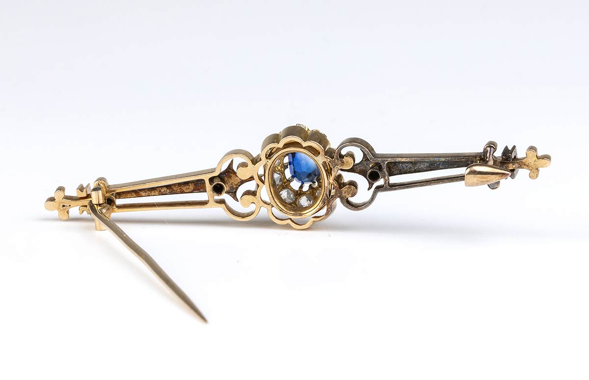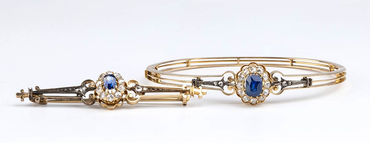Bracciale e spilla in oro ed argento con zaffiri e diamanti - fine XIX secolo