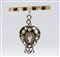 Dimensioni spilla barretta 48 x 5 mm. Lunghezza pendente 45 mm. Larghezza pendente 25 mm. Peso totale 13,8 gr.