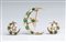 oro giallo, decorate con paste vitree verdi e perle di fiume.