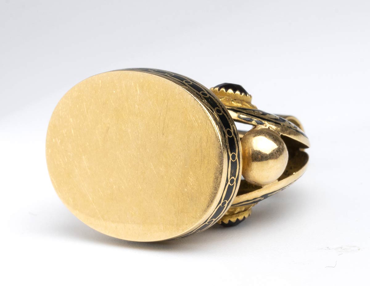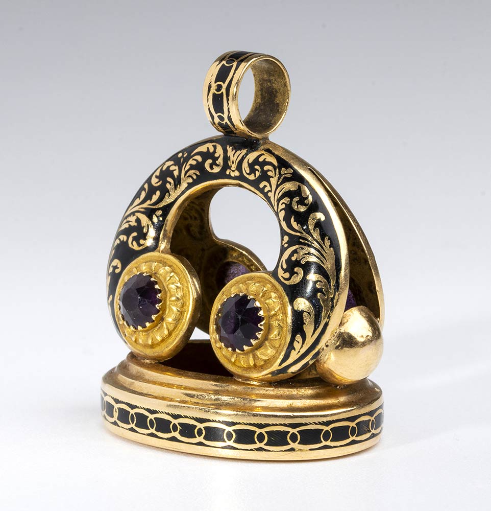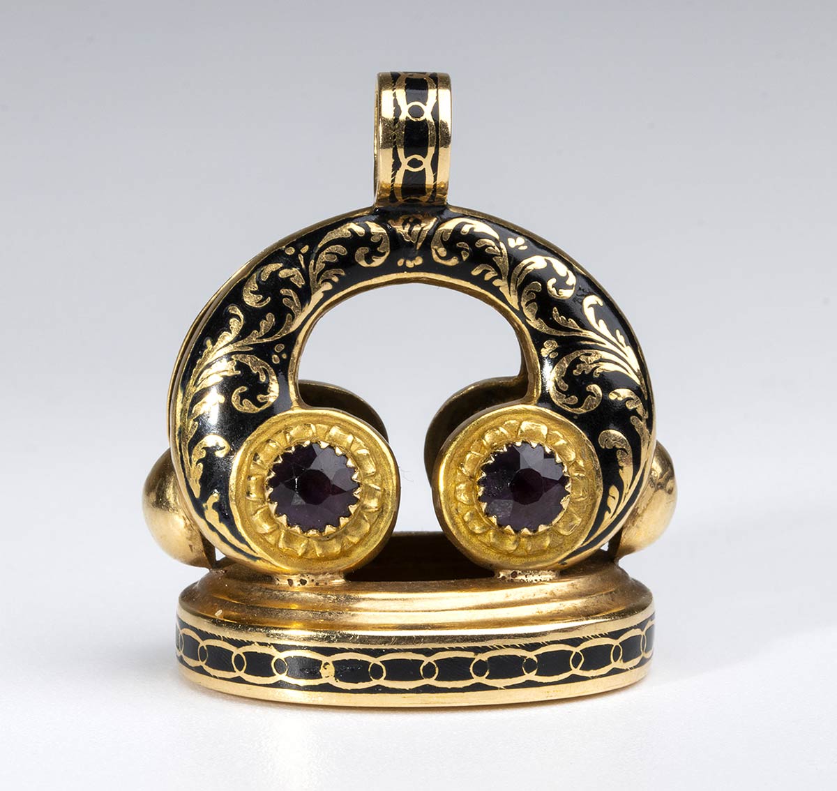 Sigillo in oro con smalti e granati - prrima metà XX secolo
