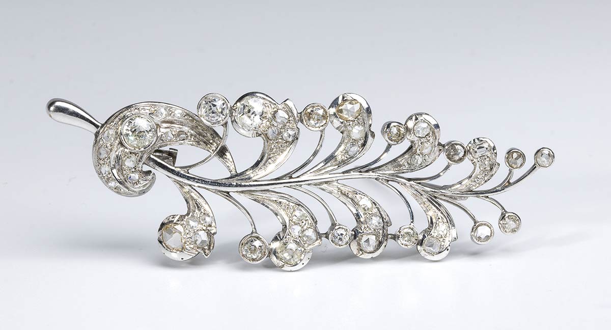 Grande spilla a foglia in oro e diamanti - anni '40 del XX secolo