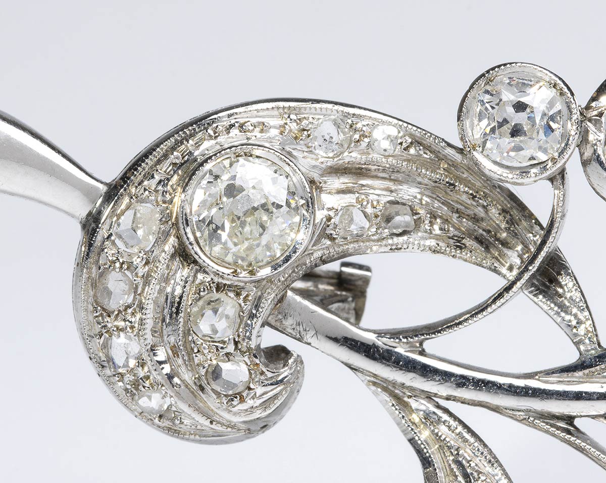 oro bianco, incastonata con diamanti taglio a rosa e taglio old mine per circa 5,80 ct.