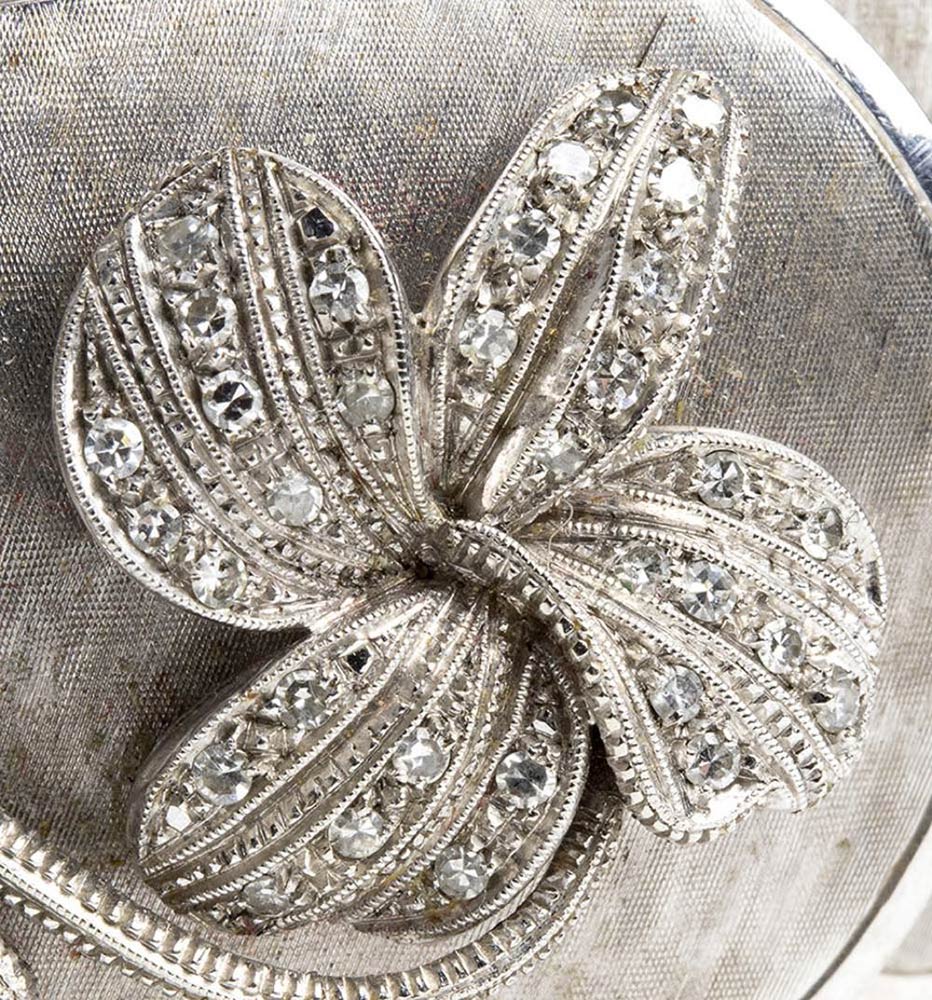 oro bianco 18k, con motivo a fiore in diamanti taglio huit-huit 0,50 ct circa, G-H, VS. Punzonato "750".
