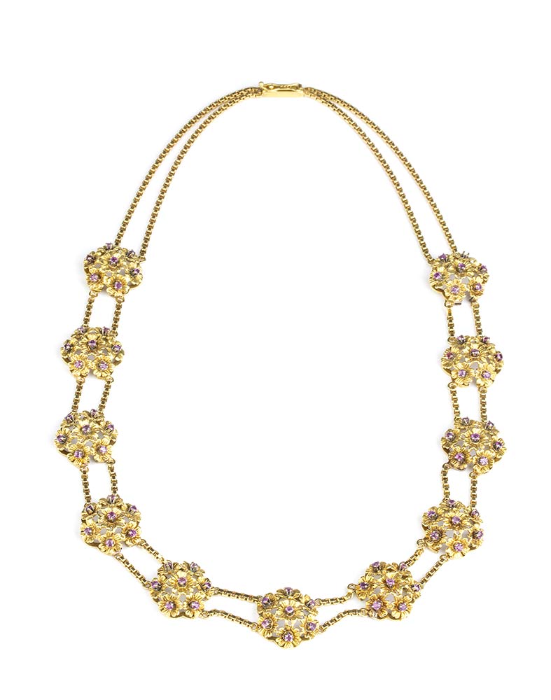 Girocollo in oro con fiori in rubini