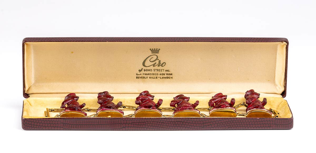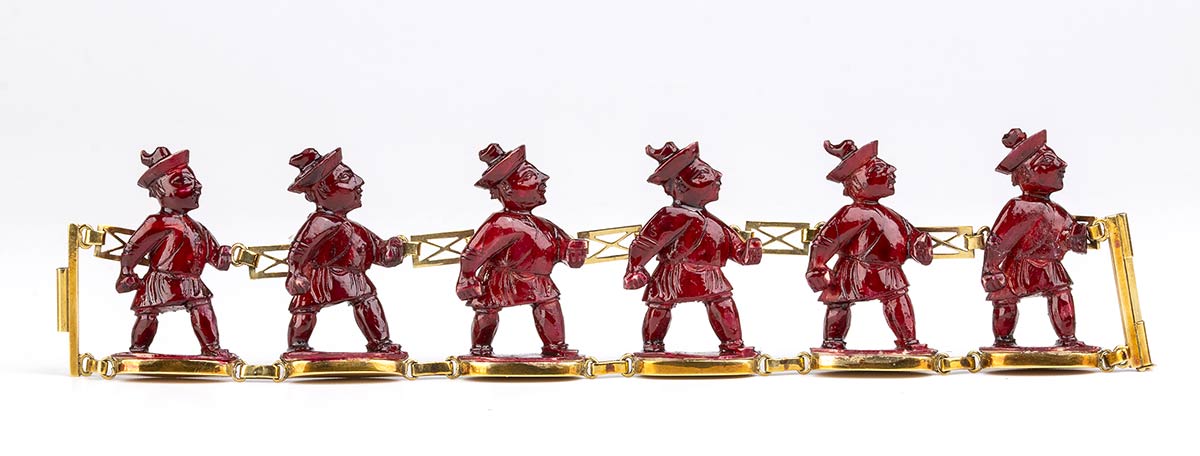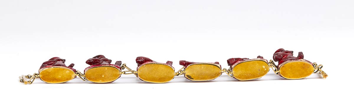 Bracciale in oro con figure di guerrieri orientali in lacca rossa
