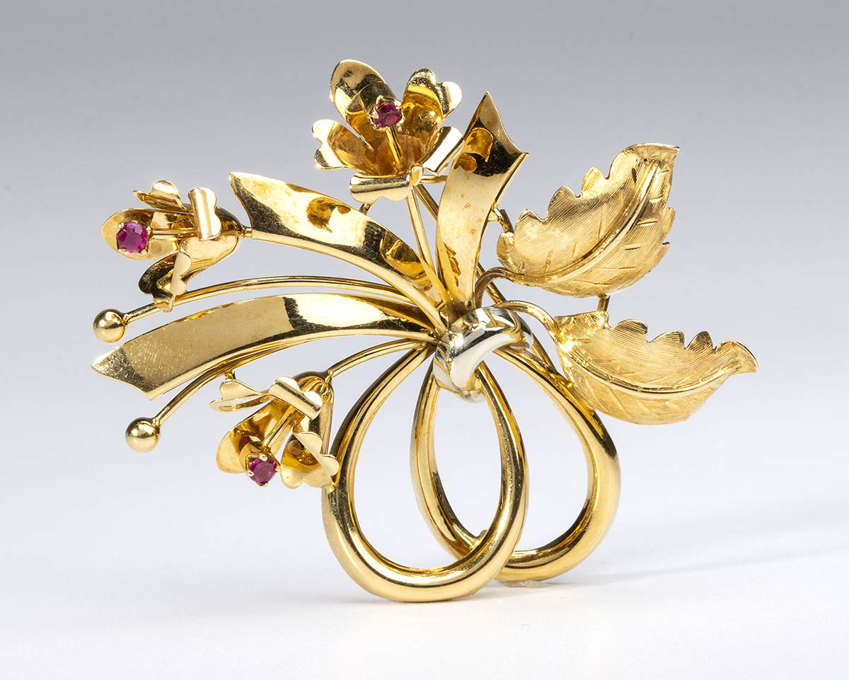 Spilla in oro e rubini sintetici - anni '60 del XX secolo