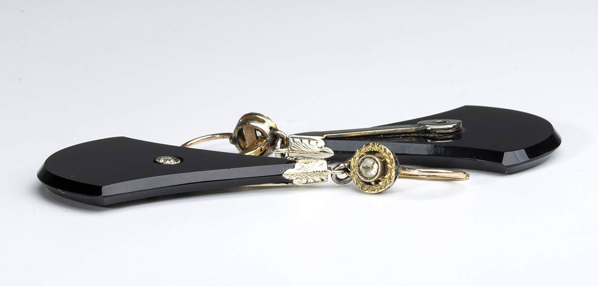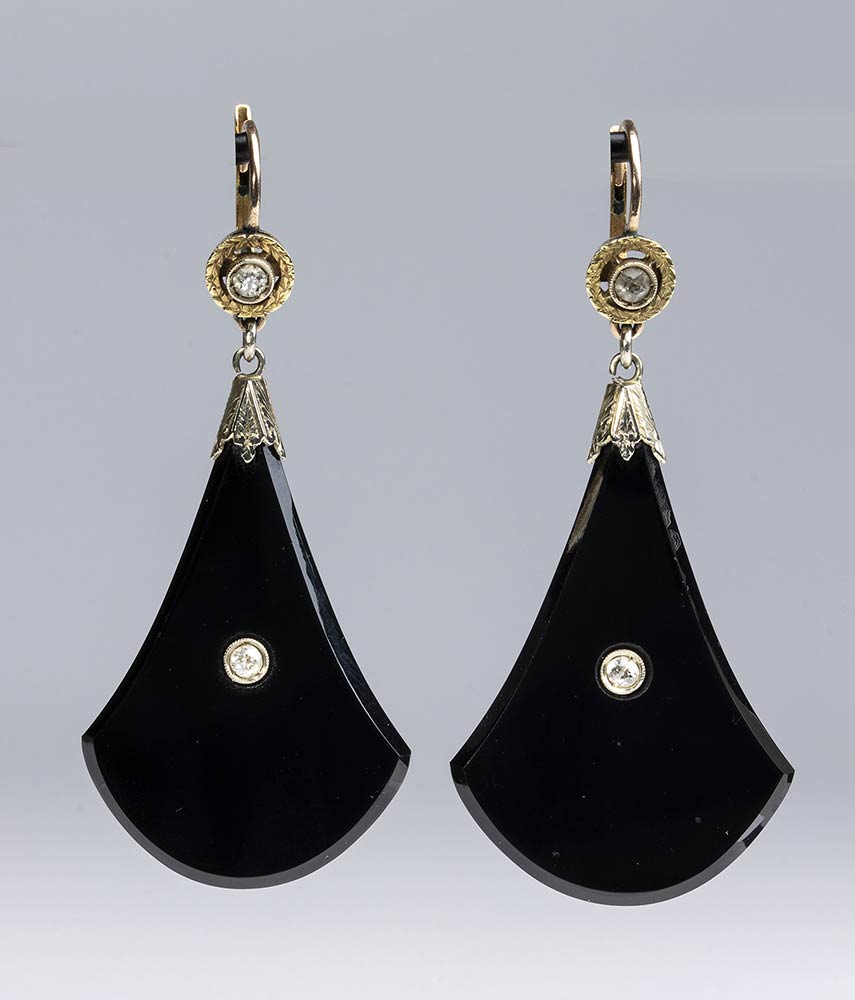 Orecchini pendenti in oro, onice e diamanti taglio old mine