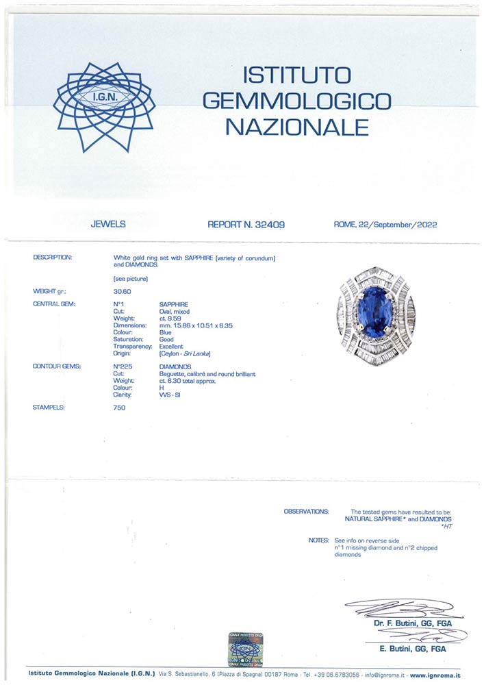 Lot 387 | Anello in oro con zaffiro e diamanti