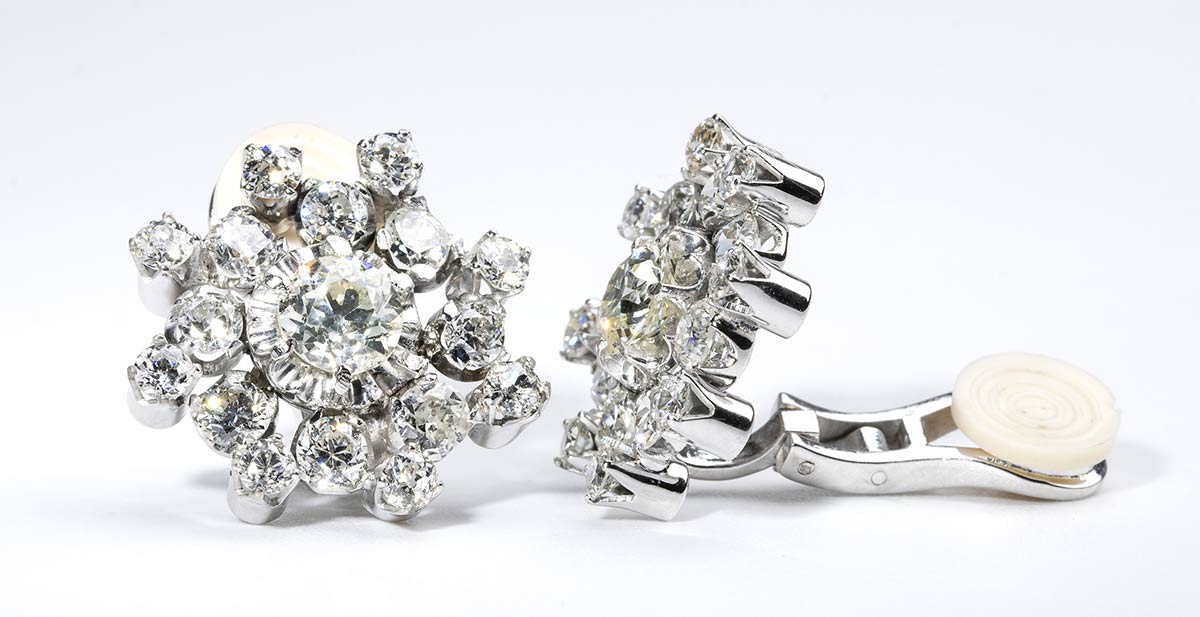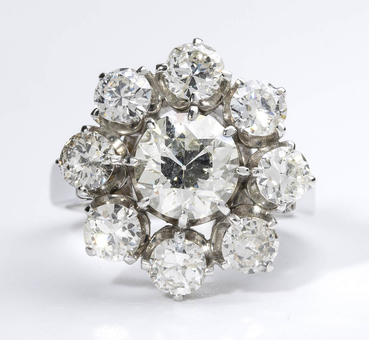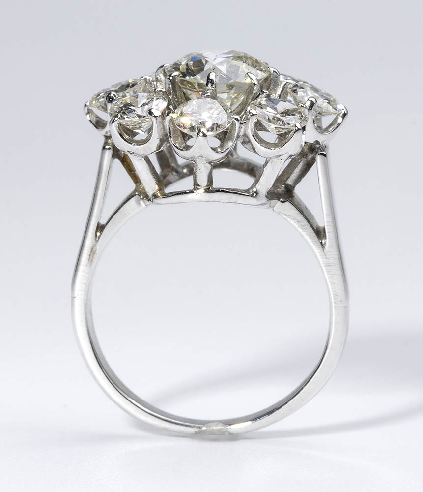 Demi parure composta da un anello ed un paio di orecchini con motivo a fiore in diamanti