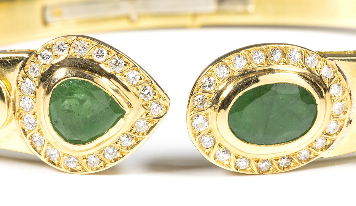 Bracciale a cerchio in oro con smeraldi e diamanti