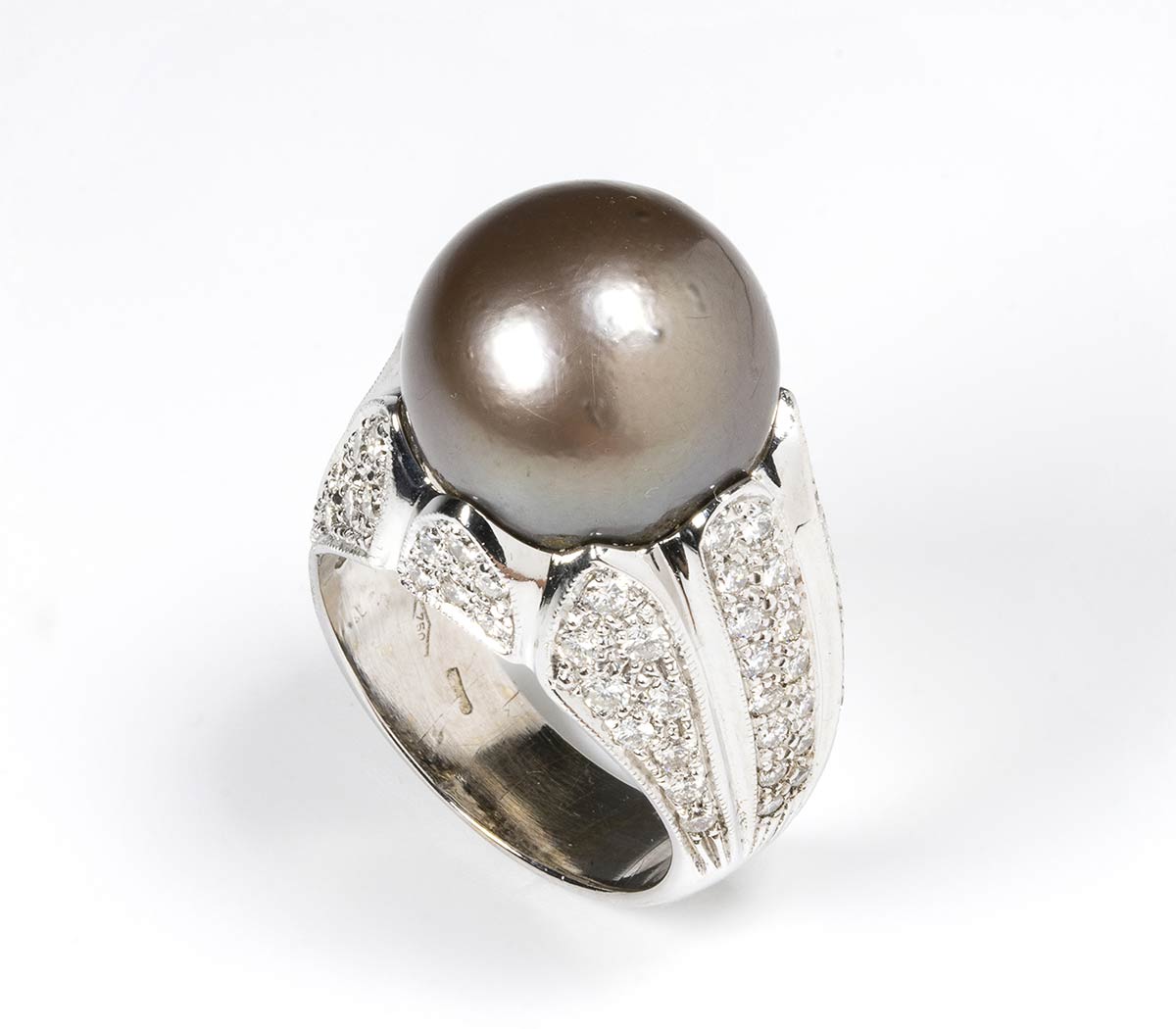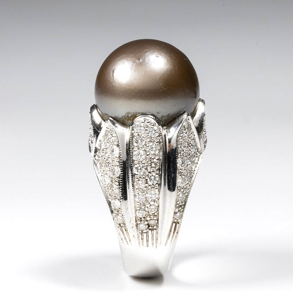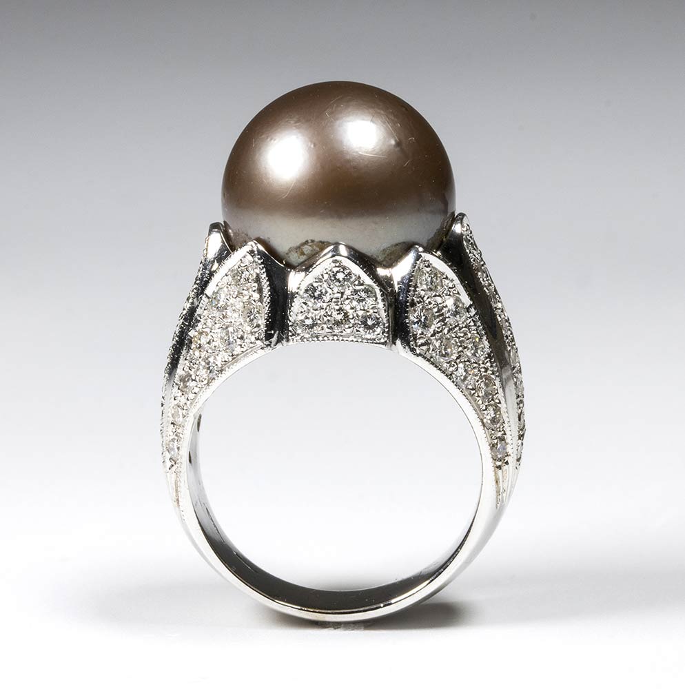 Anello in oro con perla chocolate e diamanti