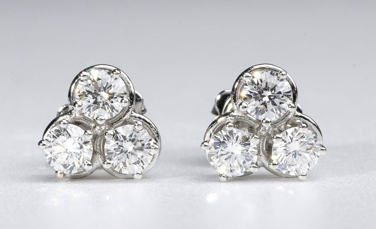 oro bianco 18k, ciascuno incastonato con tre diamanti.