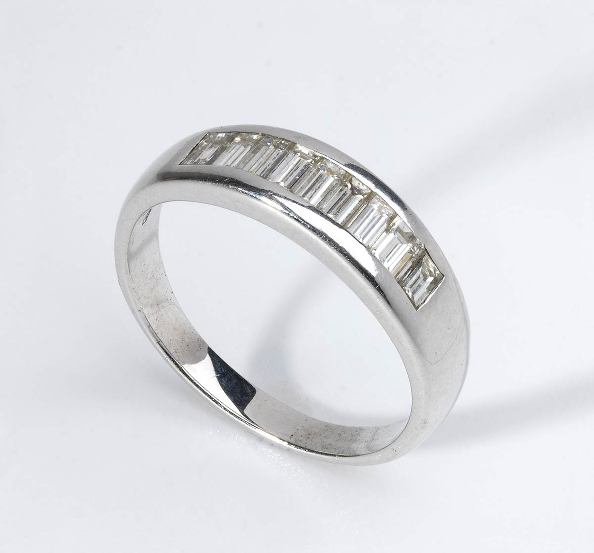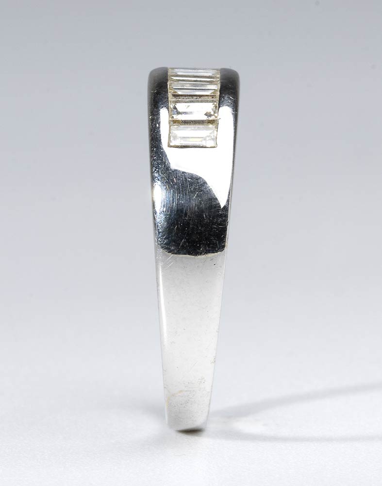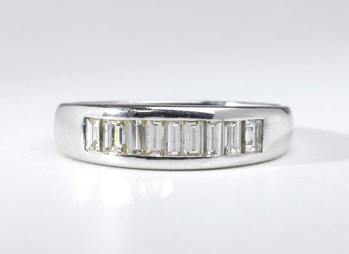 oro bianco 18k, incastonato con lunea di baguette di diamanti.