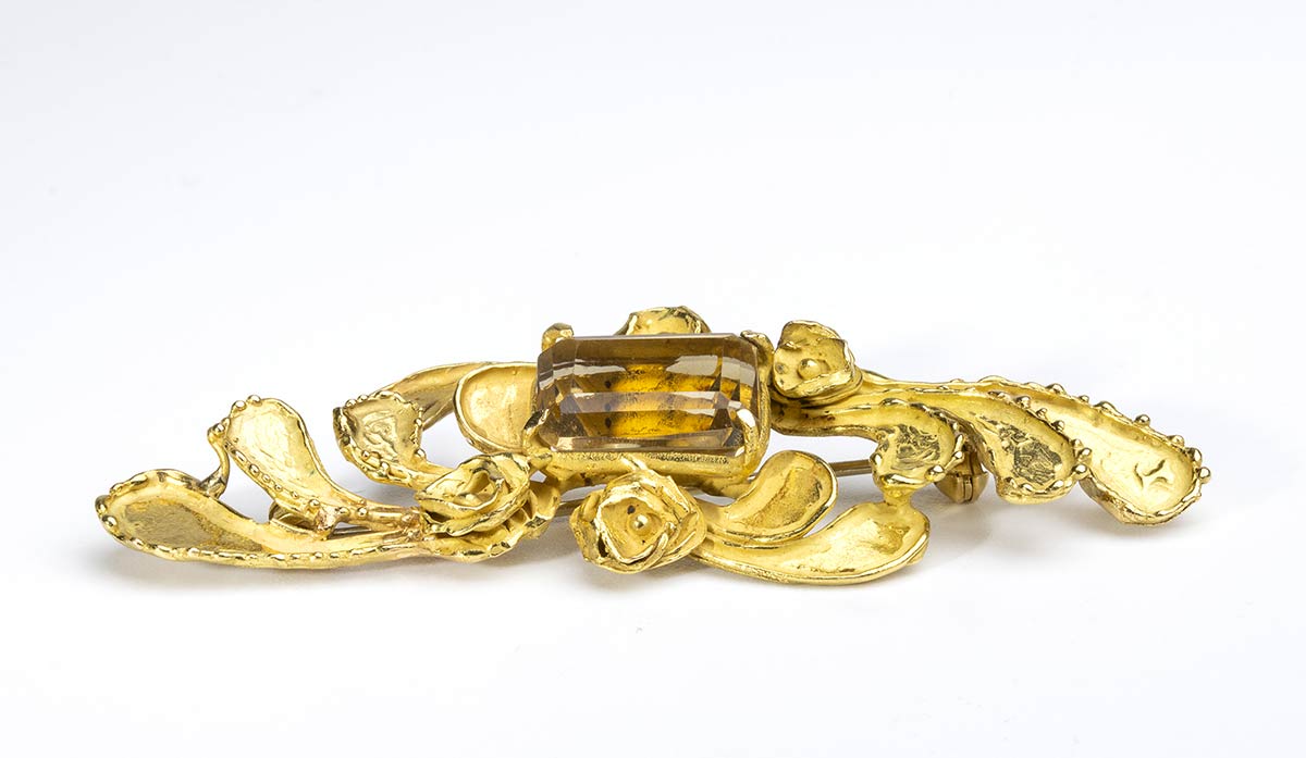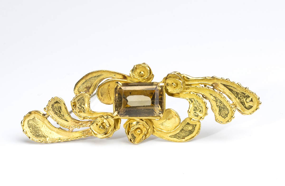 Spilla in oro con quarzo citrino