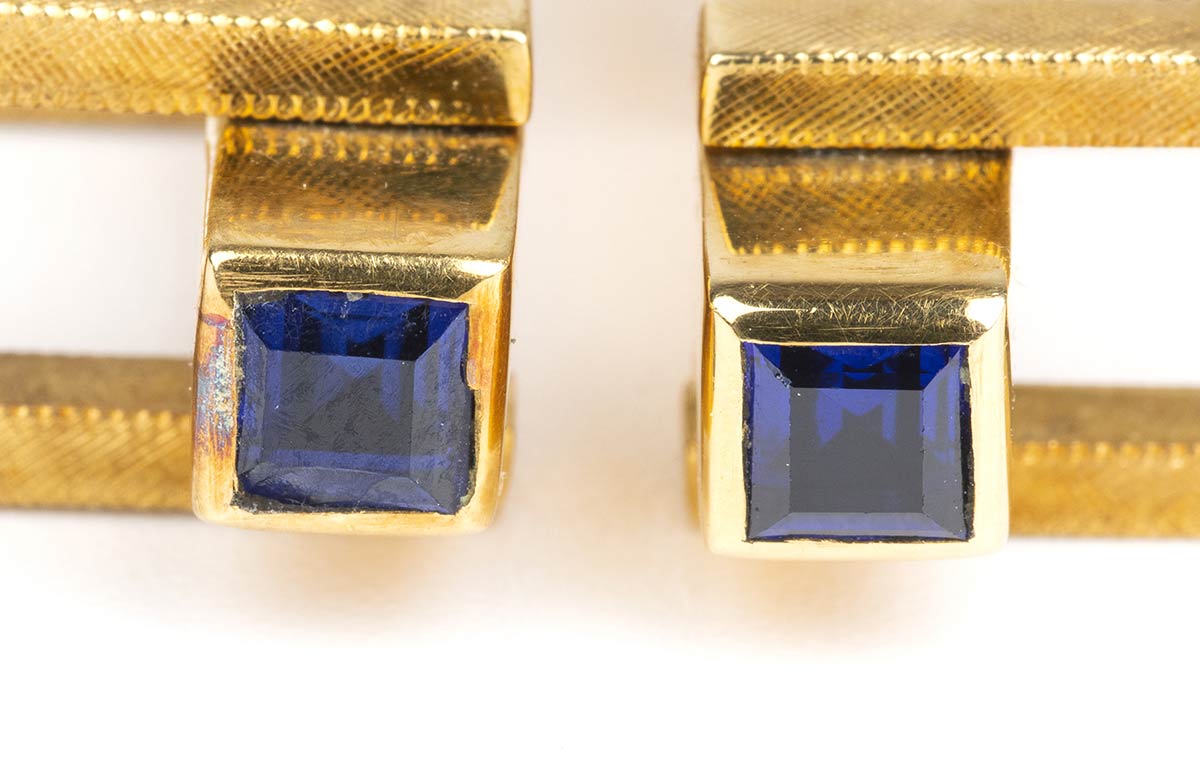 Paio di gemelli da polso in oro giallo con zaffiri sitetici