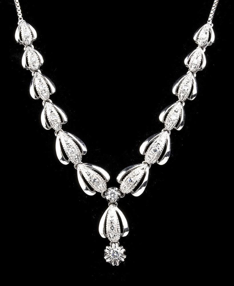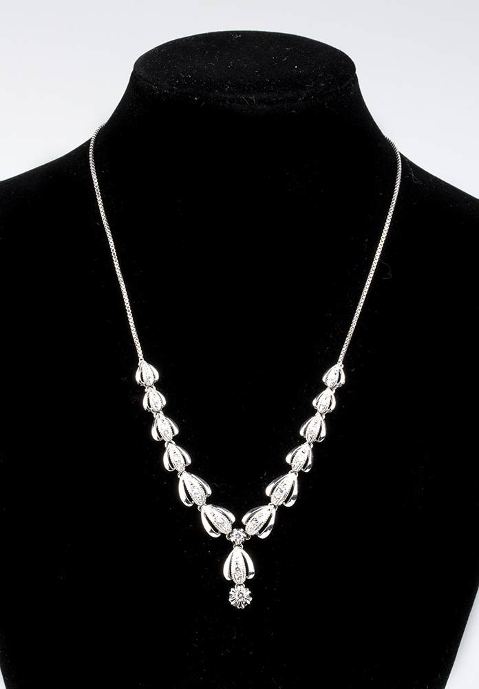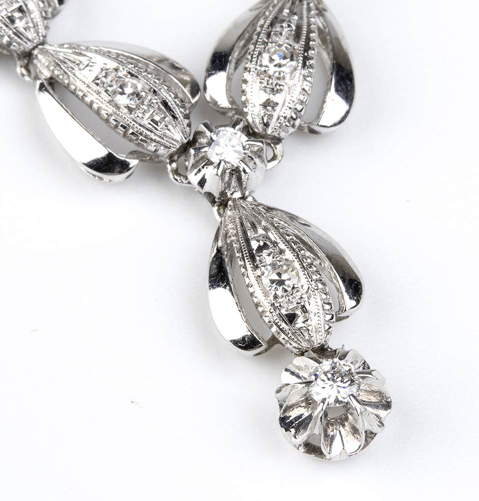 oro bianco 18k, con linea di motivi a foglia in diamanti.