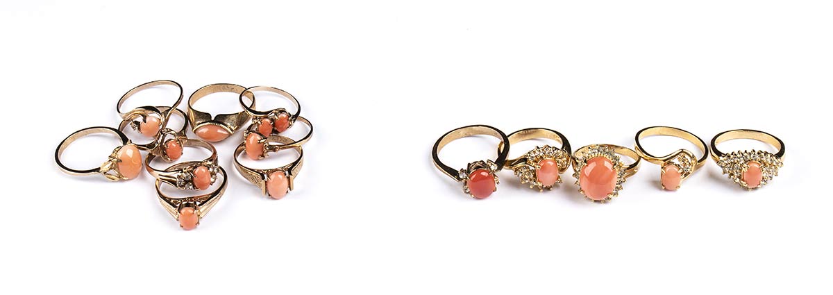 Lot 500 | 14 anelli in oro, argento e corallo cerasuolo