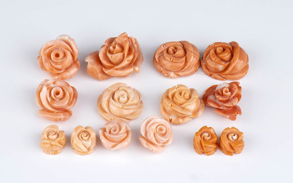 Lot 518 | 14 rose in corallo cerasuolo scolpito