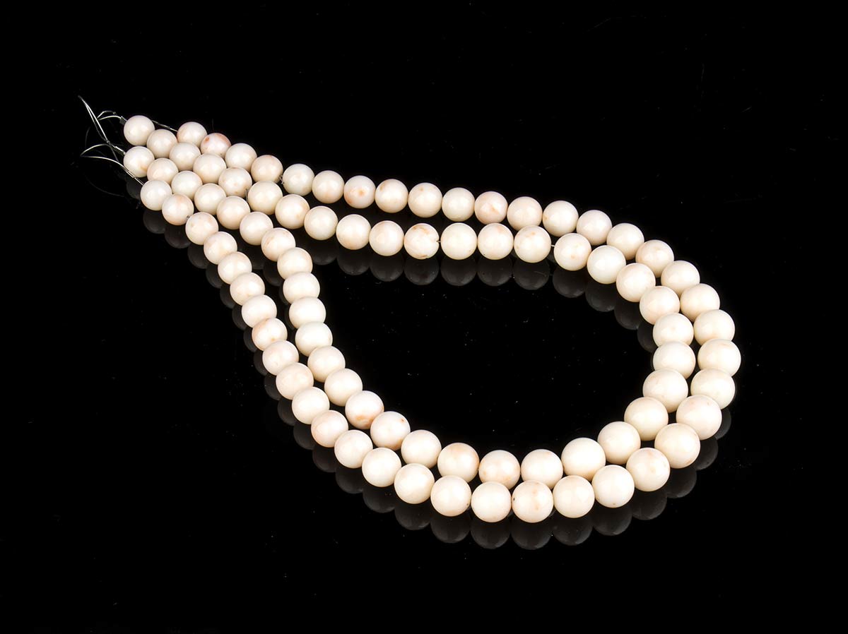 2 fili slegati di sfere di corallo rosa disposte in gradazione