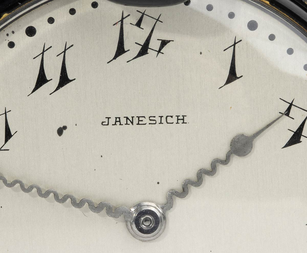 cassa in oro e smalti, quadrante argentato con numeri arabi e sfere nere in acciaio firmato Janesich e Vacheron & Constantin Geneve. Movimento a carica manuale nr. 397696.