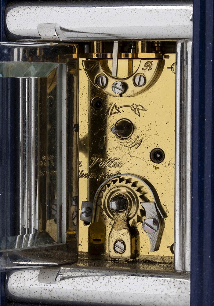a carica manuale, in metallo e pasta di lapislazzuli. Firmata su quadrante e movimento "La Vallée".