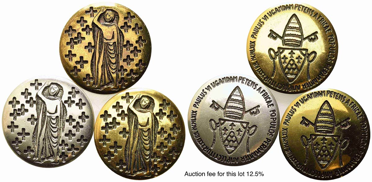 1969 Viaggio in Uganda (Au 68,63 gr; Ag 47,48 gr; Ae 39,42 gr). FDC.