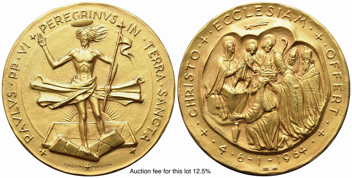 1964 Pellegrinaggio in Terra Santa (Au 56,93 gr; Ag 41,80 gr; Ae 34,75 gr). FDC.