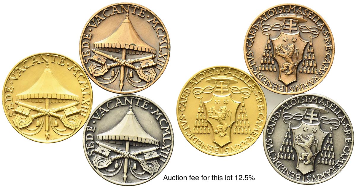 1963 Camerlengo Cardinale Benedetto Aloisi Masella. Opus Aurelio Mistruzzi (Au 29,93 gr; Ag 27,77 gr; Ae 24,26 gr). FDC.