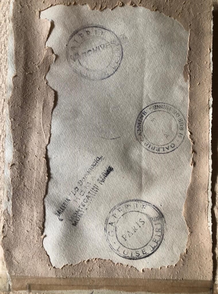 Al verso reca timbri 'Galleria La Barcaccia' Roma e 'Galerie Luise Leiris', Parigi