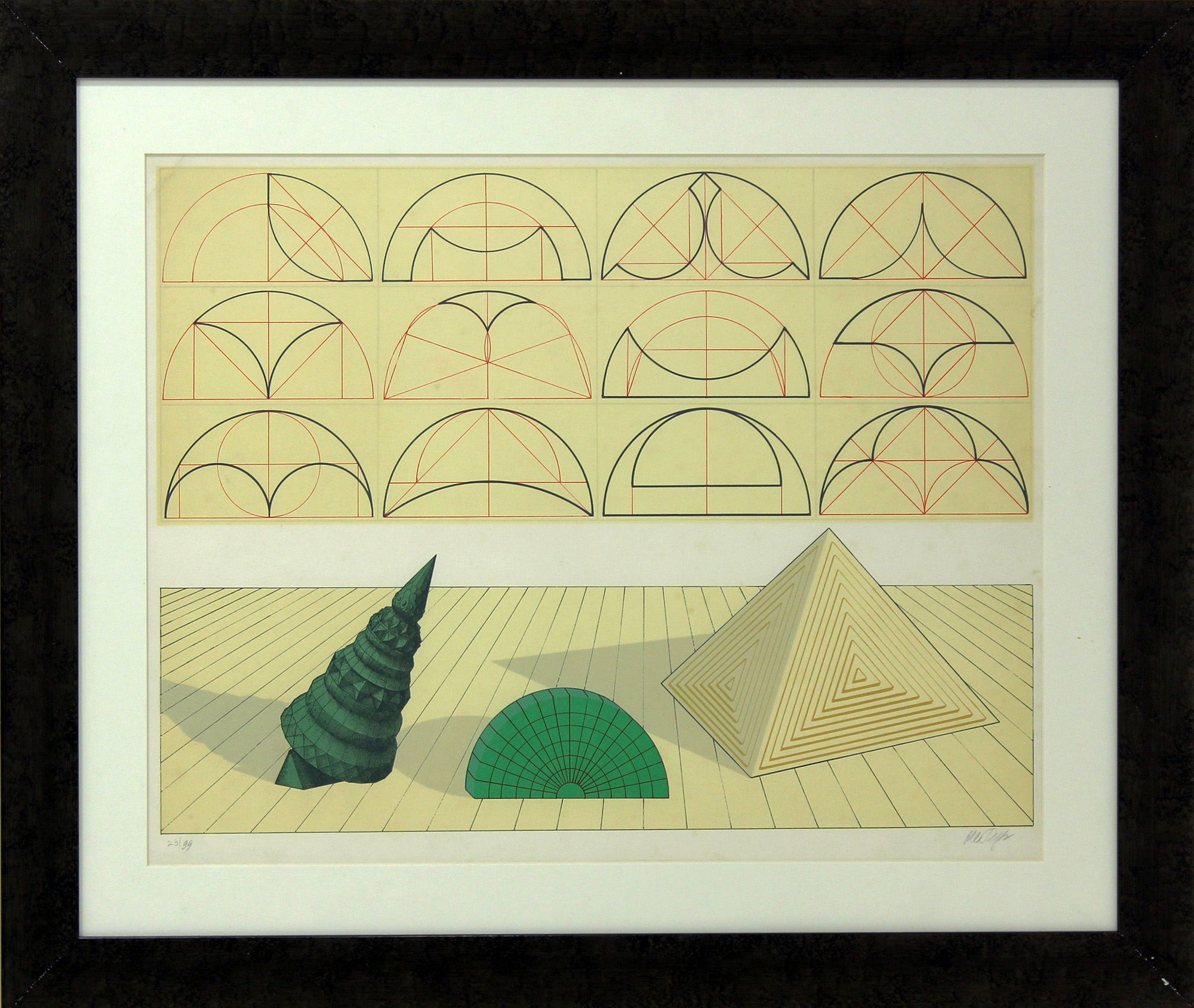 Lucio Del Pezzo Geometrie, Anni Novanta litografia su carta cm 63x49 Tiratura...