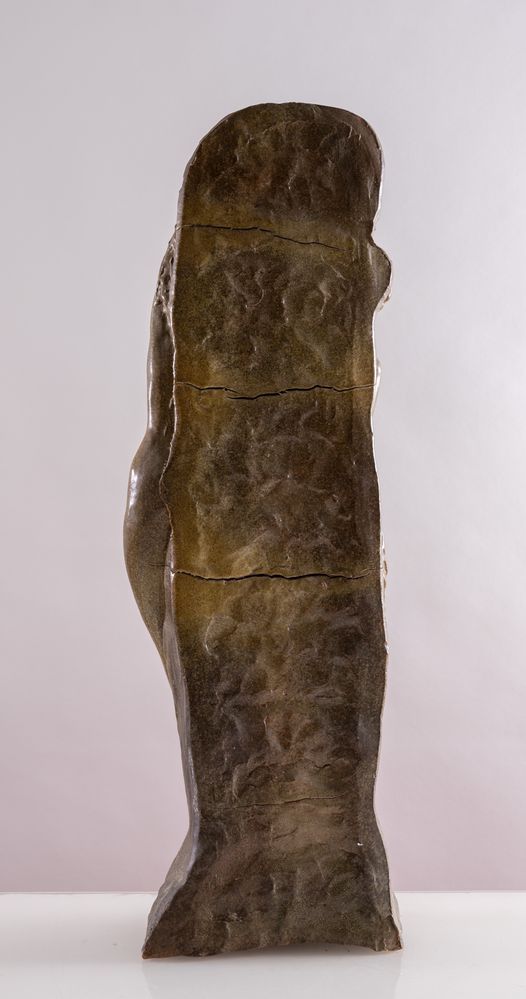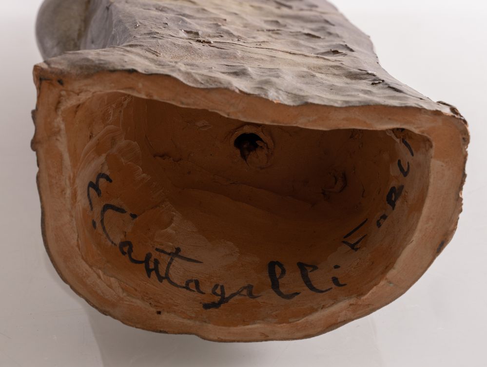 ENRICO CANTAGALLI (Brisighella 1925 - Forlì 1995) "Tre grazie". Scultura in maiolica policroma. 1950 ca. Opera firmata all'interno E. Cantagalli, Forlì. Cm 58x12x19.