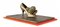 gold painted ladies shoe filled wiyh stuffed fabric on wood base 5,91x3,55x8,67 in