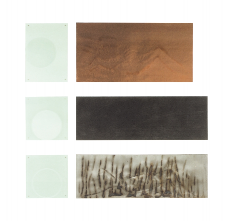 ferro, legno, carboncino, rame e vetro cm 210x207