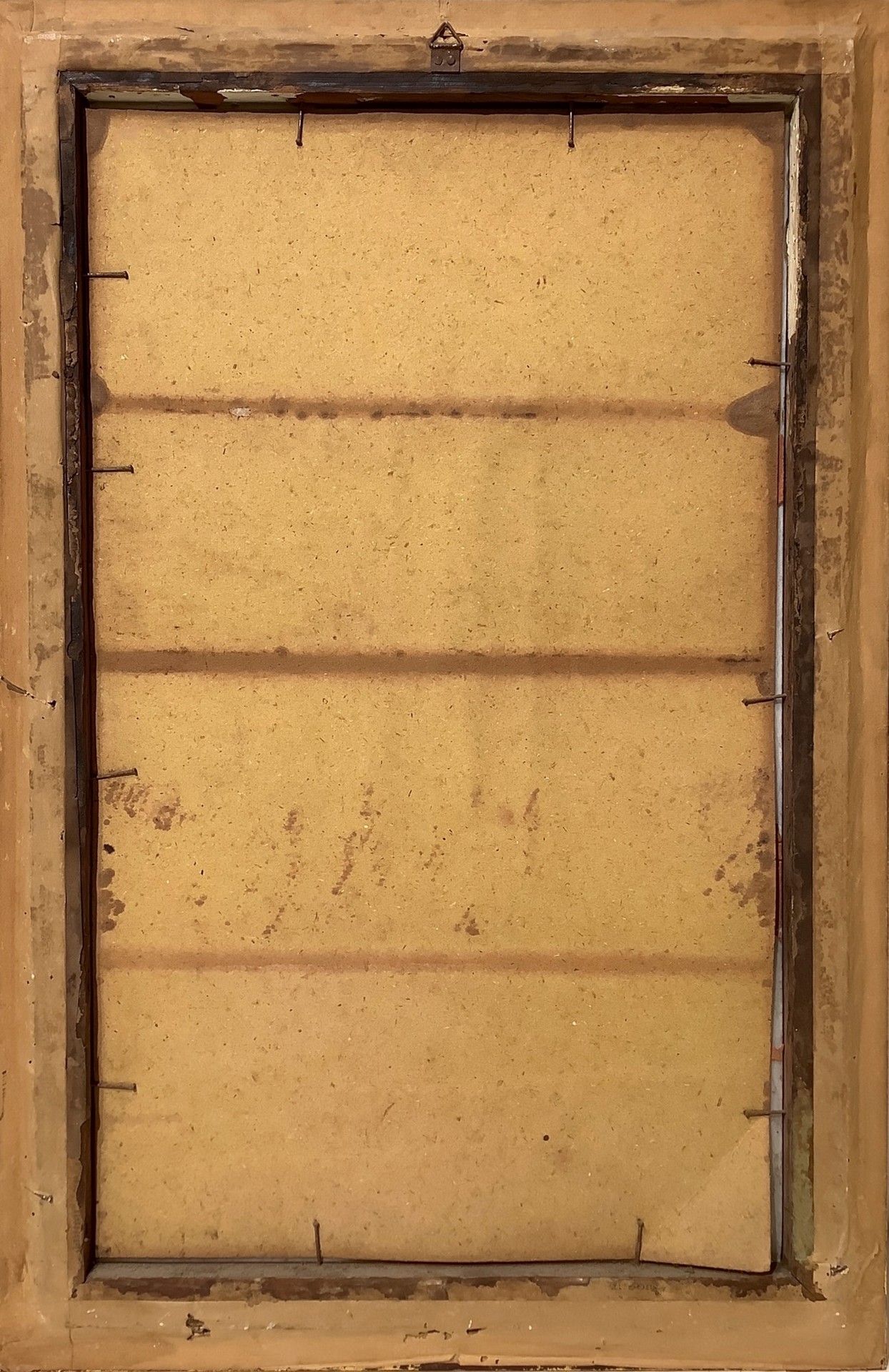 Ritratto di nobildonna sul balcone con sfondo paesaggistico, 20° secolo cm 60 x 35 in cornice cm. 70 x 4644 dipinto su plexiglass