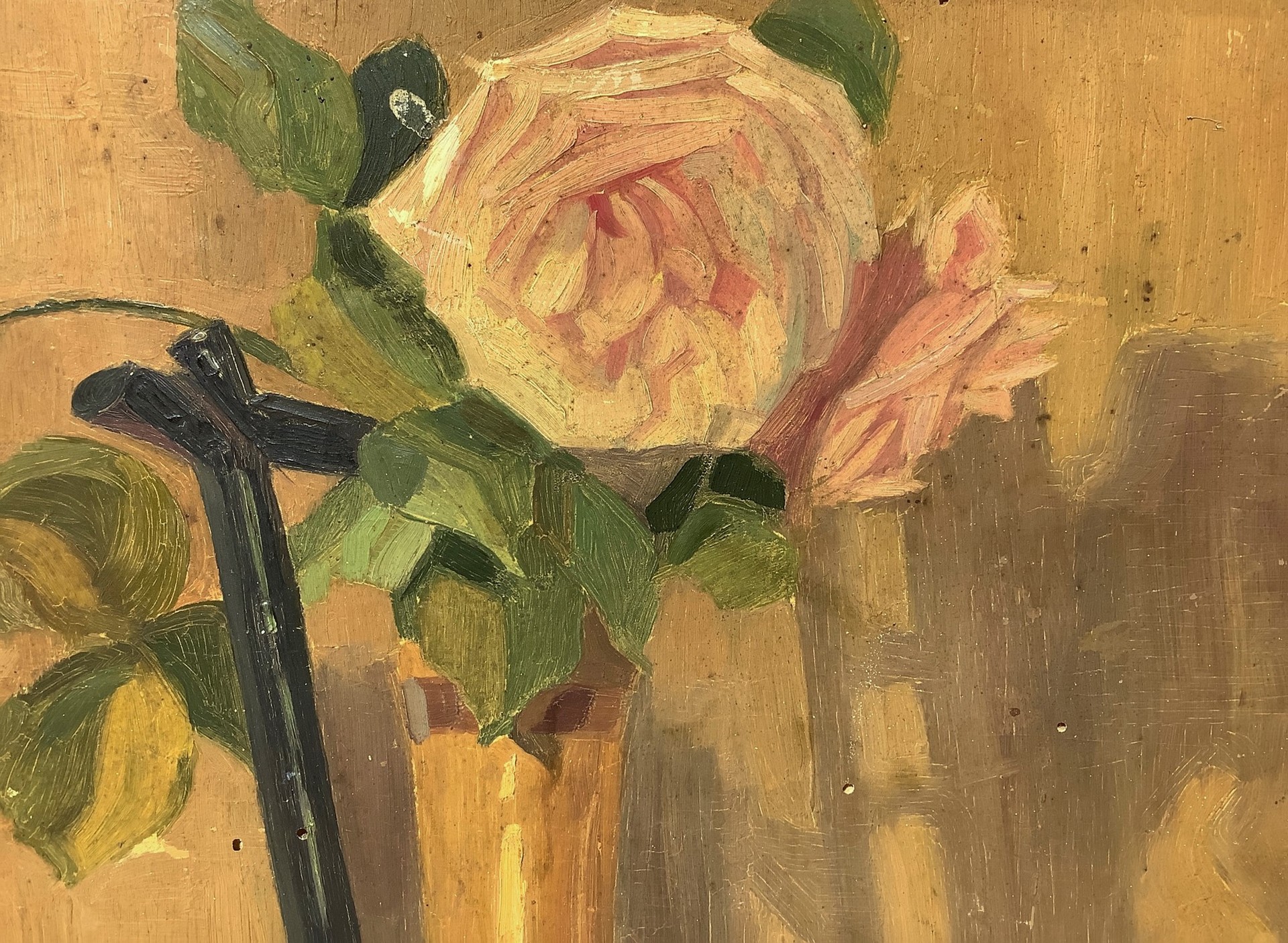 Vaso con rose cm. 26 x 34 in cornice 33 x 40 Olio su tavola Firmato in basso a destra A.Villani