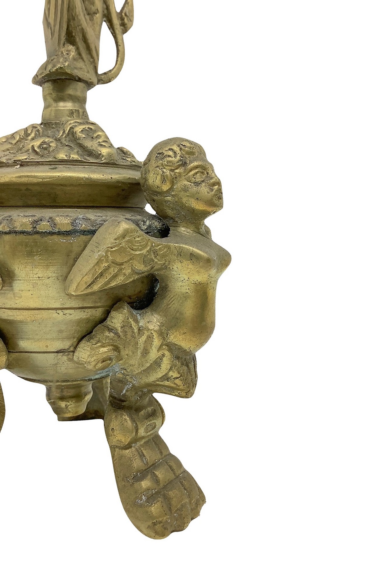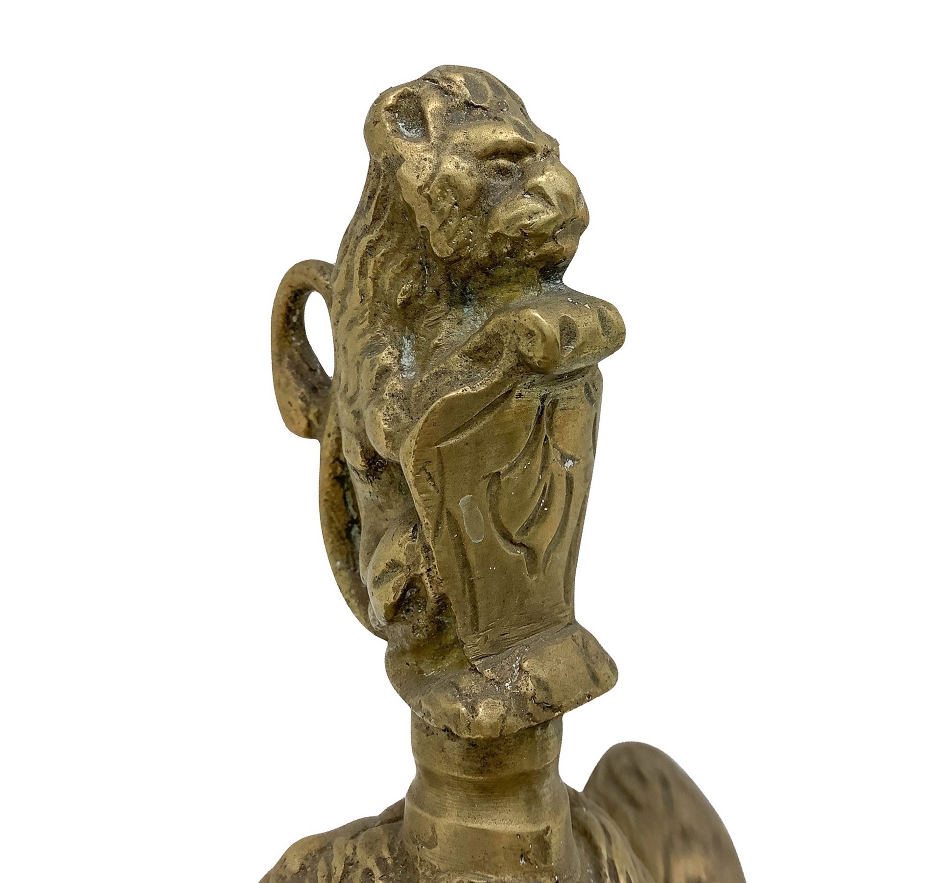Calamaio in bronzo dorato, nineteen° secolo cm. 16 x 9 Con angeli alla base e presa con leone marzocco