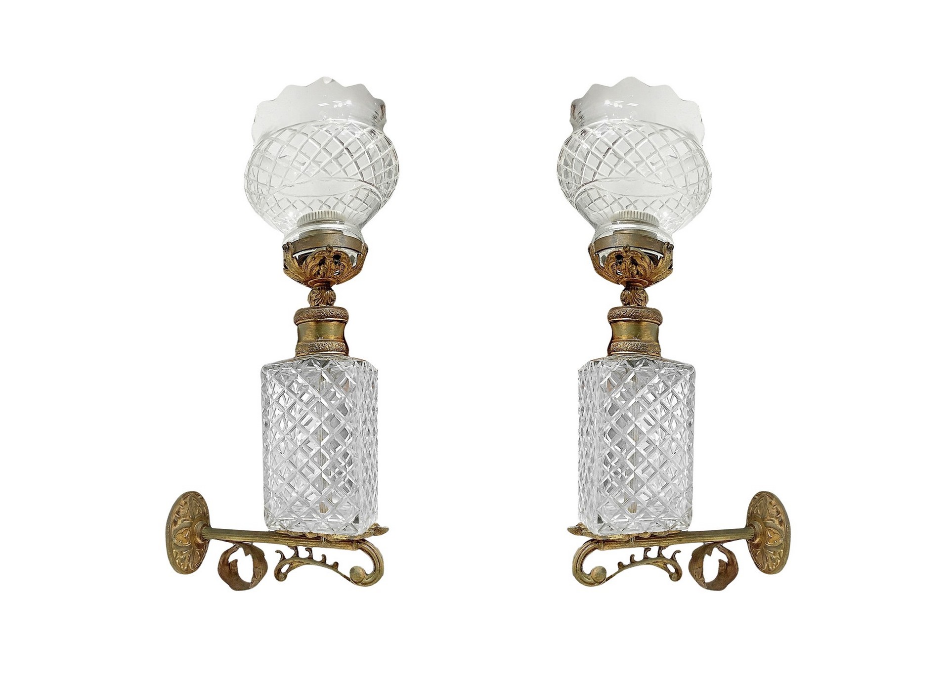 Coppia di appliques in bronzo e vetro, Primi 20° secolo