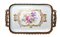 Limoges - Alzatina in porcellana con elementi in bronzo dorato h cm 12, piano cm 27 x cm 17 Decoro floreale al piano. Marchio Limoges France alla base e sul fondo. Presenta incollatura.
