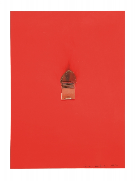 BERNARD AUBERTIN (1934-) Rosso 1974fiammiferi su carta cm 59x41,5firmato e...