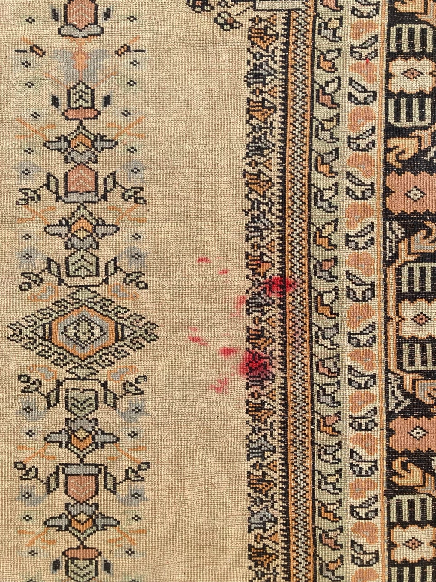 Previous Lot 162 Next Art La Rosa Casa d'Aste - Viale Africa 12, 95129 CATANIA #65: Asta10Days #65: Asta10Days Friday 26 May 2023 hours 16:30 (UTC +01:00) Tappeto Tappeto 113x188 cm Di colore beige, con dettagli in arancio e nero. Macchiato.