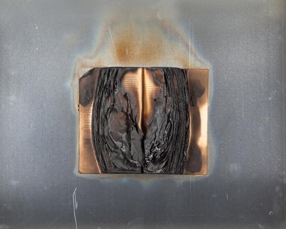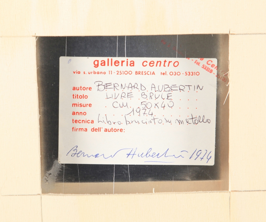BERNARD AUBERTIN (1934-) Livre brulè 1974libro bruciato su metallo cm...