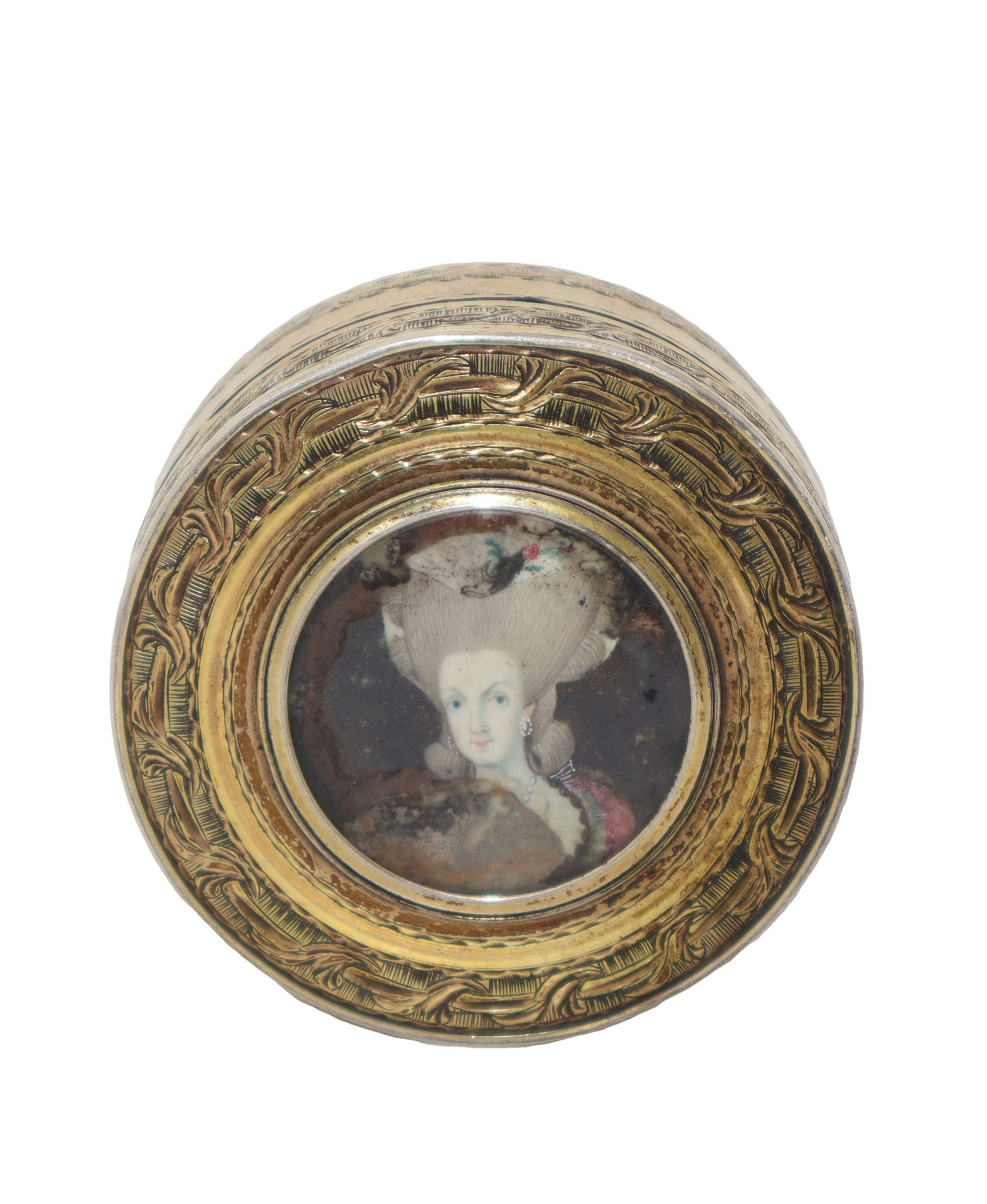 Scatola rotonda con miniatura centrale di Maria Antonietta, nineteen° secolo