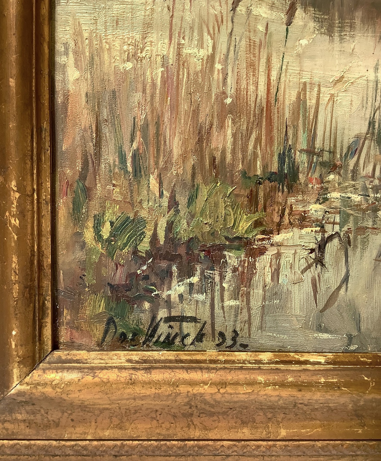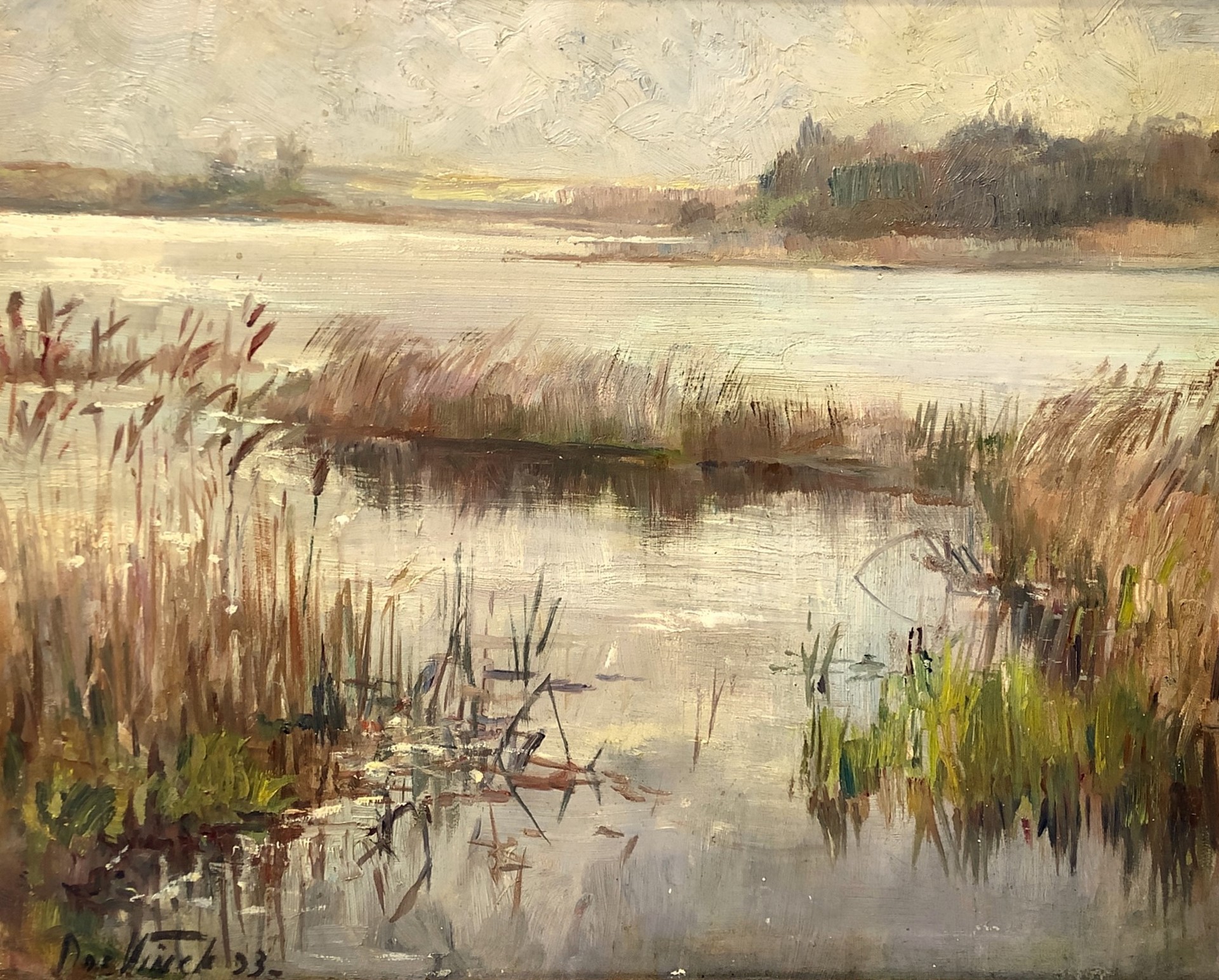 Jozef Vinck (Antwerp 1900-1979) - Paesaggio lacustre, 1933 Cm 32x40, in cornice cm 43,5x50 Olio su tavola Firma in basso a sinistra , datato ‘33.