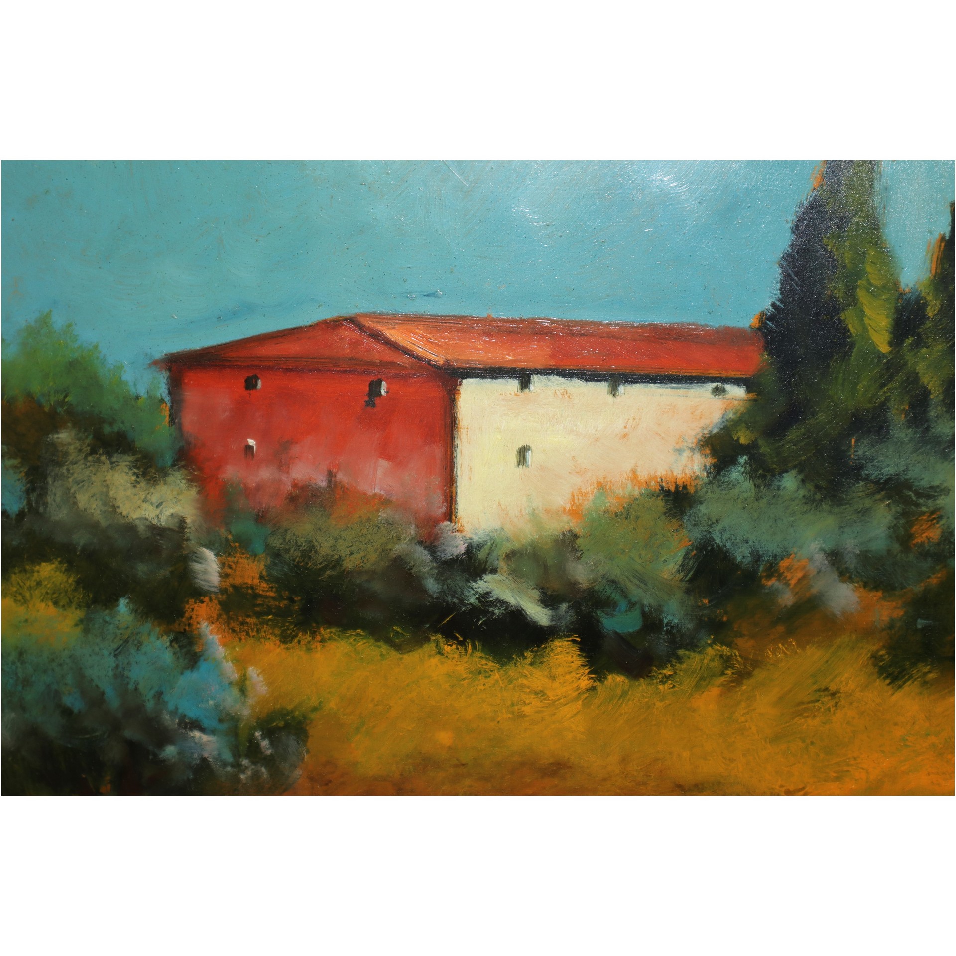 Coppia di dipinti, Paesaggio campestre con case h cm 32 x 50, in cornice 47 x 66 / h cm 40 x 50, in cornice 57 x 67h cm olio su faesite Firmati G. Gagliardi