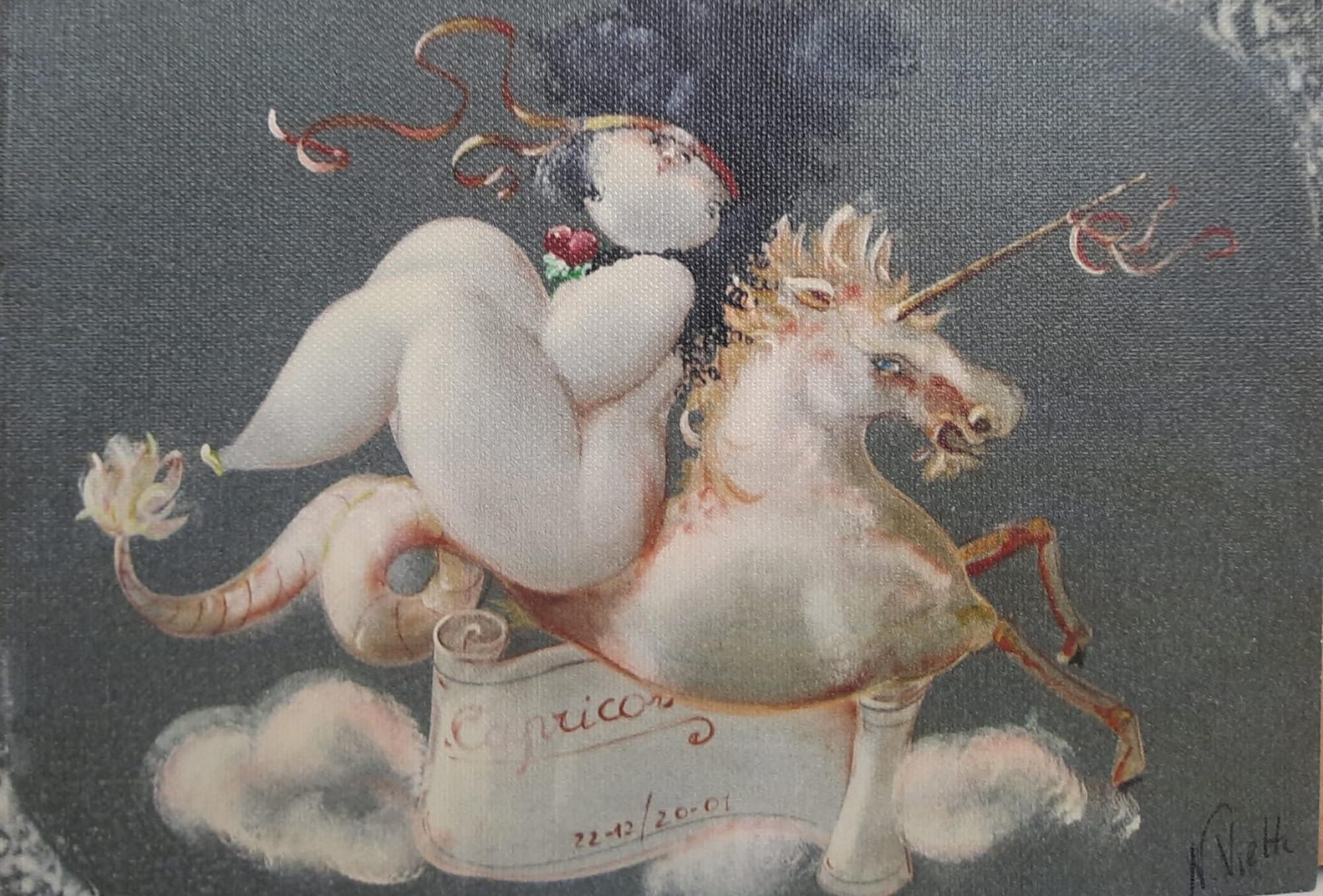 Nicola Vietti CAPRICORNO stampa su tela, cm 15,5x23 firma sul retro: firma e...