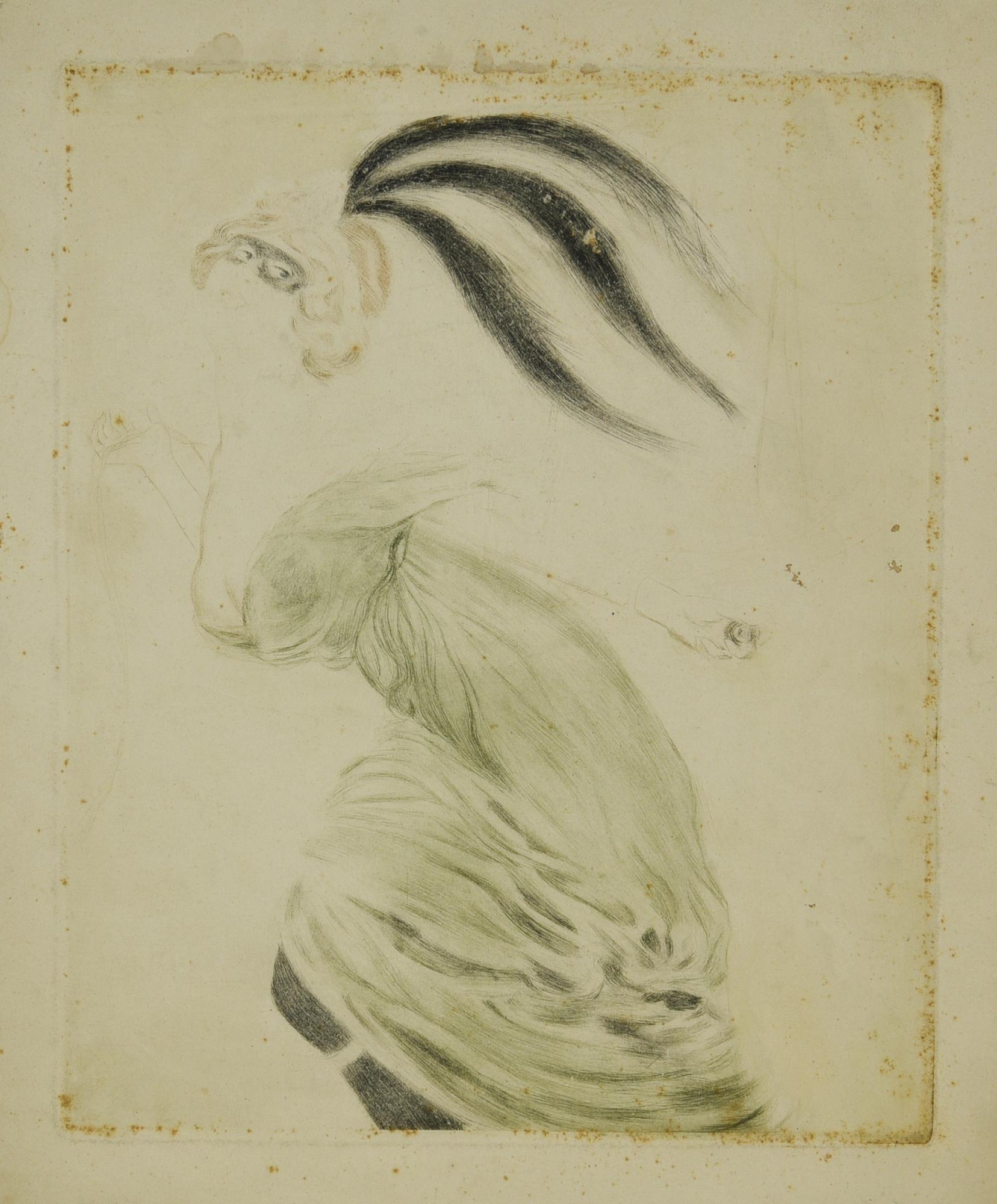 Maurice Bompard FIGURA FEMMINILE IN MASCHERA puntasecca, cm 32x26, su foglio...