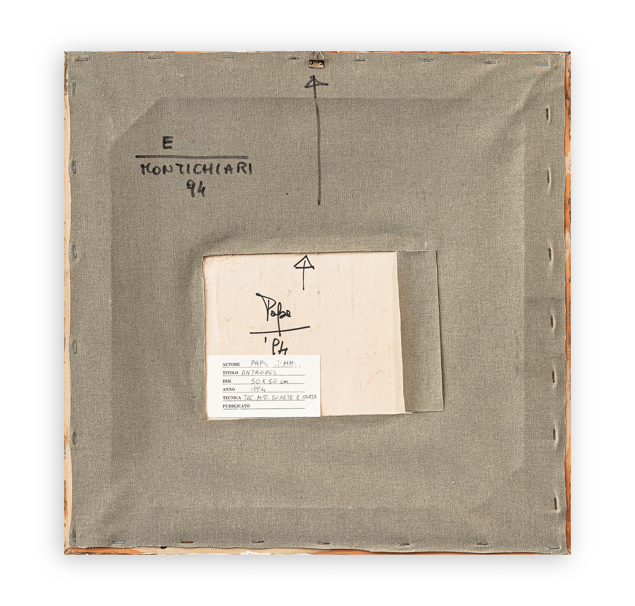 Firma, datazione e indicazioni per il posizionamento al retro