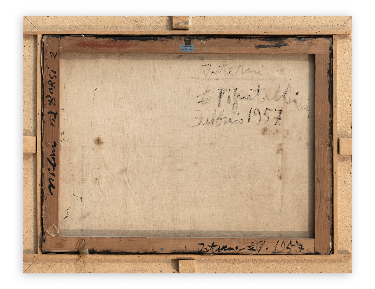 Firma, titolo e datazione (Febbraio 1957) e località (Milano) al retro