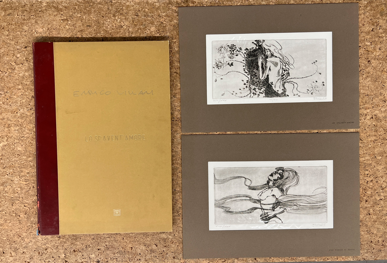 Cartella contenente 10 acqueforti di Enrico Villani ed un testo di Franco Passoni