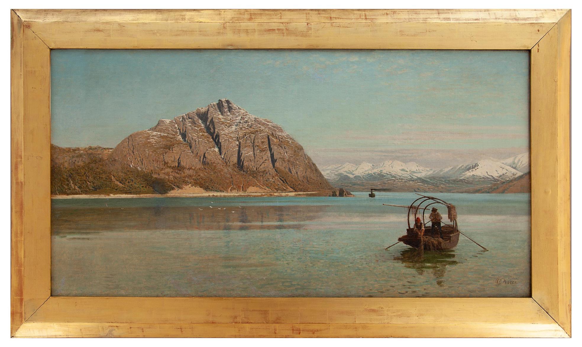 Guido Ricci Casorate Primo ( PV ) 1836 - 1897 Gurone ( VA ) Il Monte Generoso Lago di Lugano Olio su tela cm 50x70
